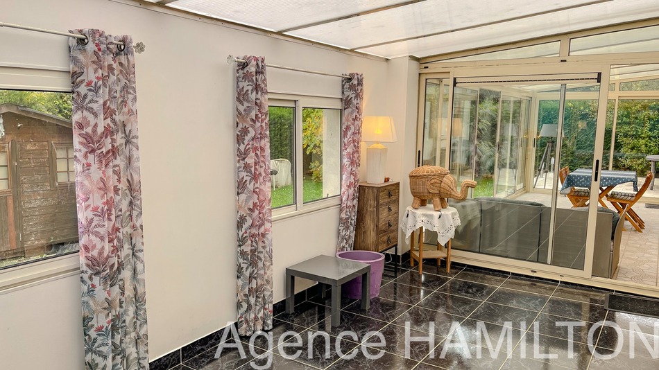 I offer you this beautiful family home in a small residence, with garage, terrace, double veranda and enclosed garden with trees. On the ground floor, a living room, an open equipped kitchen, 2/3 bedrooms, a shower room, a separate toilet and a large enclosed garden with trees with terrace, a chalet, and a BBQ. On the 1st floor, 2 or 3 bedrooms and a bathroom with toilet. An extension has recently been created with a garage, a veranda and one of the upstairs bedrooms. Ideal for a large family, close to amenities, schools and transport. Plot size: 577 m2, electric heating,