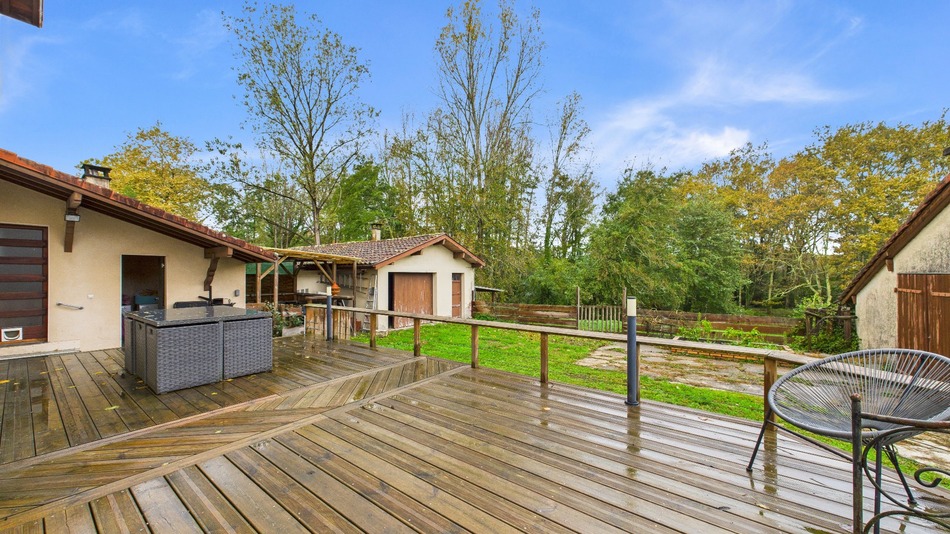 Située dans un environnement paisible tout en étant à proximité immédiate du centre-ville de Magescq, cette spacieuse maison de 256 m² vous offre confort, volumes généreux et multiples possibilités d'aménagement. Dès l'entrée, vous serez séduit par le vaste séjour / salle à manger, baigné de lumière, offrant une agréable hauteur sous plafond et de beaux volumes pour des espaces de vie conviviaux. La grande cuisine équipée et fonctionnelle, est complétée par une seconde cuisine à l'arrière de la maison, idéale pour les grandes réceptions ou pour créer un espace indépendant. Le rez-de-chaussée comprend également deux chambres, parfaites pour recevoir ou pour un usage de plain-pied. Une partie du niveau peut d'ailleurs être indépendantisée en studio, selon vos besoins. À l'étage, l'espace nuit se compose de quatre chambres, dont deux avec salles d'eau privatives et dressing, ainsi qu'un WC séparé. Côté extérieur, la grande terrasse orientée sur la verdure invite à la détente dans un calme absolu. La propriété dispose également de deux garages, offrant de multiples possibilités de rangement. Enfin, selon vos projets, le terrain peut être divisé, permettant la construction d'une maison supplémentaire sur la parcelle. Les atouts : Calme et proximité du centre-ville Grands volumes et luminosité Nombreuses possibilités d'aménagement (studio, division parcellaire, etc.) Possibilité chambres d'hôtes Deux garages Environnement verdoyant A visiter sans tarder avec SELECTION OCEAN !