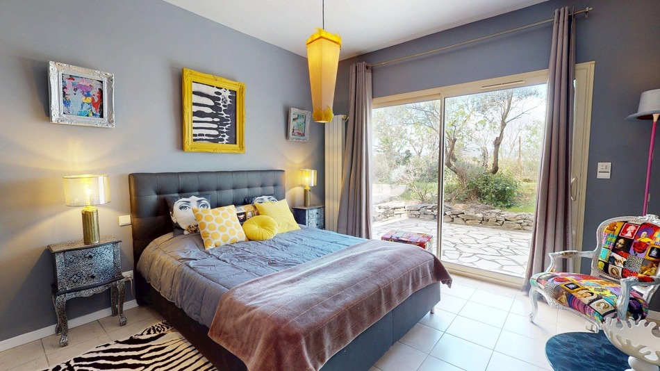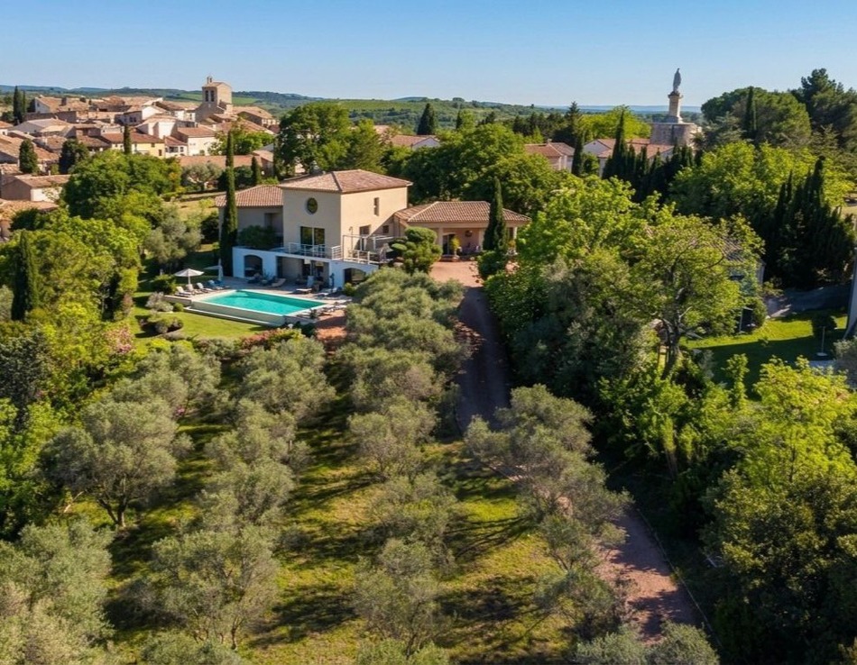 A magnificent architect-designed villa offering exceptional panoramic views, comprising 5 bedrooms, 3 bathrooms, 250 m² of living space on a 4,361 m² plot, with terraces, gardens, an independent garage/studio, an olive grove and a large swimming pool. This superb, light-filled spacious property was designed by an architect to encompass the breathtaking 180-degree views and the current owners have created a truly unique, luxurious stylish family home. Very private, not overlooked and positioned in a quiet exclusive setting. The villa features secure electronic gates, a driveway, an independent studio / garage facility of 130m², mature Mediterranean gardens, an olive grove, numerous terraces and a magnificent swimming pool. Situated on the outskirts of the charming village of Magalas, the centre of which is just a few minutes' walk away and offers all amenities: restaurants/bars, a bakery/café, supermarkets, a DIY store, medical centres, doctors, dentists, etc., just 25 km from the Mediterranean Sea and 16 km from the old town of Béziers.
