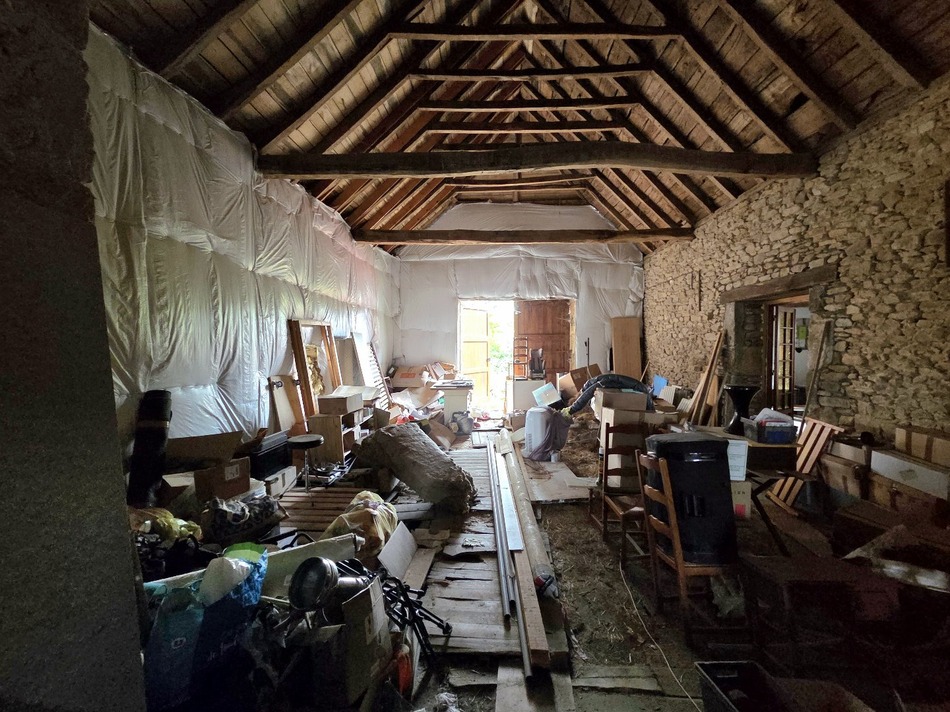 Boussac, house with 85m² of living space and its barn on their land of approximately 1,100m² The house consists of two bedrooms of 9.7m² and 16.7m² as well as a shower room of 5.5m². A beautiful kitchen/living/dining room area completes this ensemble with a surface area of 34.8m². You will also find a scullery of 6.7m² for all storage. Two cellars with a total surface area of 42.2m² will allow you to store your preserves in the fresh air! A superb barn of 426m² on 2 levels will offer you different projects. You can expand the living area, or create a new accommodation for rental. A plot of approximately 1,100m² adorns the property to allow you to enjoy beautiful sunny days! The house is equipped with a double-flow tubed VMC (the roof outlets remain to be done), an air/water heat pump as well as a thermodynamic water heater. The house is connected to the sewer system, as well as to fiber. Work is to be done on the property, notably on a section of roof for which the material can be sold with the house (it is already present in the barn). The charm of the building will not leave you indifferent! Located in the heart of the village, the property is subject to the Batiments de France due to the proximity of the splendid listed church! A school is present on site, 5 minutes away on foot, and all amenities are less than 10 minutes away by car! Do not hesitate to contact us!