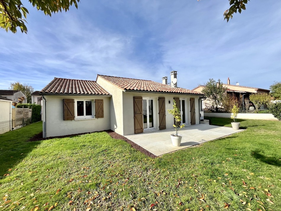 Discover this renovated 112 m² house, offering modern amenities and spacious rooms, close to shops, schools, and bus lines. You'll be welcomed by a bright living room of approximately 37 m², extending into a fitted and equipped kitchen. The sleeping area comprises four comfortable bedrooms, a bathroom, and a separate toilet. Outside, you'll enjoy a flat, fully fenced, and easy-to-maintain garden, as well as an attached garage. No work is required. The house benefits from double glazing, mains drainage, and a heat pump, ensuring excellent energy efficiency. A real gem!