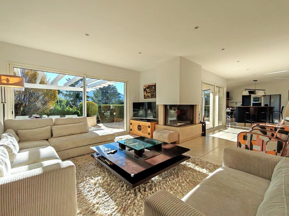 Perched on the heights of Millau, in a peaceful and private setting, this magnificent south-facing T7 villa offers approximately 210 m² of living space on a generous 1,443 m² plot. On the ground floor, you will immediately be captivated by its spacious 71 m² living area, flooded with natural light and offering stunning views over the garden and the infinity pool. The fireplace creates a warm and inviting atmosphere, while the fully equipped kitchen with pantry combines elegance, functionality, and comfort. The villa features 3 large bedrooms with built-in wardrobes, a bathroom renovated in 2024, and an exceptional master suite with dressing room, shower room, WC, and office space, opening directly onto the terrace to fully enjoy the garden and pool in complete privacy. Outside, enjoy a 76 m² terrace with barbecue, the 10 x 5 m infinity pool, pool house, shaded patio, and landscaped garden, providing an idyllic setting to relax and entertain guests. The spacious basement includes a double automatic garage and plenty of storage space. An additional bonus: a 33 m² independent space with shower and WC, with the possibility of installing a kitchenette to create a separate studio. Comfort and energy efficiency: the house is very well insulated and energy-efficient, with aluminum double-glazed windows with electric shutters, underfloor heating with Viessmann oil boiler, fireplace insert, laundry room, central vacuum system, fiber optic internet, alarm, and automatic irrigation system. This villa combines light, space, comfort, and modern amenities, offering a privileged living environment, perfect for a family or for hosting friends in a peaceful and refined setting. Explore every corner of this home with our virtual tour, available now.