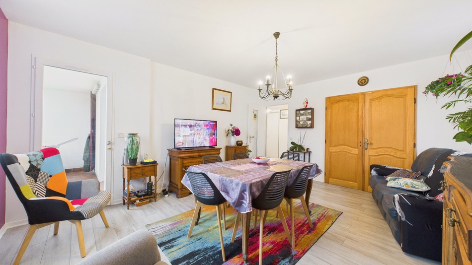 Quiet, private apartment on the 2nd floor of a well-maintained, family-friendly residence. The entrance opens onto a living room and kitchen with double access to a 10 sq m terrace, complete with a drying area. A hallway leads to a pantry, three bedrooms, a shower room, and a separate WC. South-facing with unobstructed mountain views, the residence boasts a large green space, on-site parking, and a private cellar on the ground floor. Some updating is needed. The living room could be enlarged by removing a bedroom or by opening up the non-load-bearing walls between the living room, kitchen, and drying area to create a more spacious living area. Location: just a 7-minute walk from Milady Beach and the shops and services of the Beaurivage district. Close to schools, ideal for family life, guaranteeing peace and quiet while being near the coast. Early viewing recommended. A visit can be arranged via video conference.