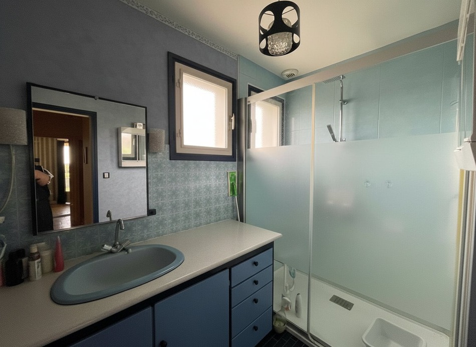 A 1970s house with windows on both sides, close to all amenities, comprising: an entrance hall leading to the first floor with ample storage and access to the living room and dining room, both opening onto a large terrace a separate fitted and equipped kitchen (open-plan possible) three bedrooms a shower room with a period walk-in shower a small separate shower and a separate WC. The living and dining rooms could be combined. On the ground floor are a garage, an office, a laundry room, two workshops, and a veranda opening onto the garden, which could be used as a kitchen and summer lounge, or as a self-contained studio. Numerous possibilities for this extremely well-maintained property! Some updating is possible if desired. Please do not hesitate to contact us!