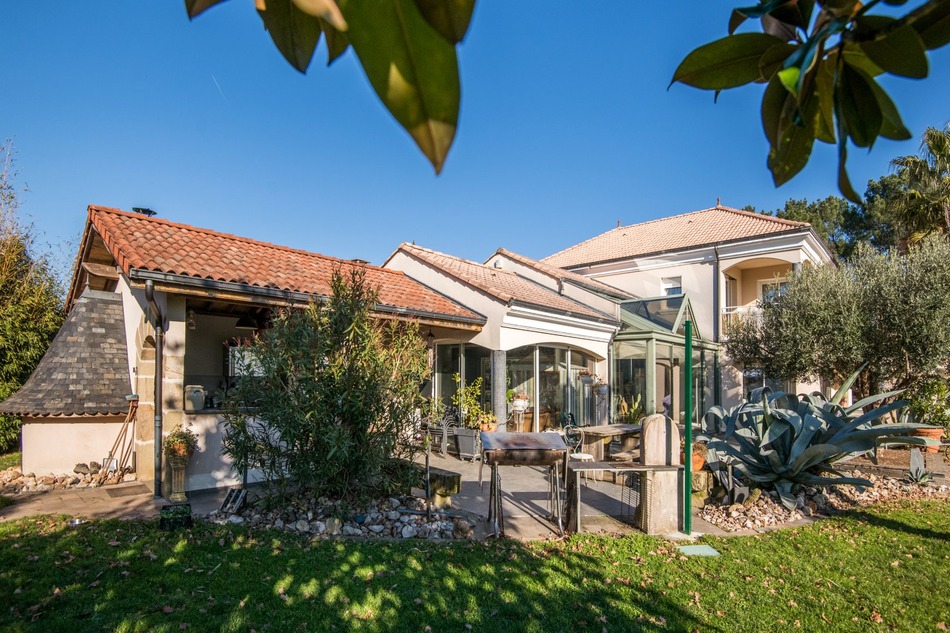 Discover a 300 sq m (3,229 sq ft) residence bathed in light, set within an 8,000 sq m (1.8 acre) garden featuring a centuries-old olive tree, majestic oaks, and carefully arranged and exquisitely landscaped beds of rare plants. Every corner of the garden exudes harmony and serenity. The generous living spaces include an 80 sq m (861 sq ft) living room and a 50 sq m (538 sq ft) fitted kitchen, designed with an open-plan layout and flooded with light thanks to its integrated veranda, and a 20 sq m (215 sq ft) pantry. Elegance and comfort are combined in every detail. On the ground floor, a multi-purpose space for sports or relaxation, a two-car garage, a 30 sq m (323 sq ft) cellar, and a 50 sq m (538 sq ft) storage room complete this home designed for a refined lifestyle. Outside, terraces, a summer kitchen, a barbecue, and a bread oven extend the living spaces in a harmonious and welcoming setting, perfect for savoring every moment. Upstairs, the architecture reveals impressive volumes, with large, light-filled bedrooms and spaces designed for comfort and fluidity. Each room testifies to the exceptional character of the construction, combining classic elegance and modernity. The upstairs terrace offers a unique view of the garden and its landscaped flowerbeds. The sleeping area also includes a 35 sq m master suite with a dressing room and shower room, and a 25 sq m bedroom on the ground floor. A rare property, designed for a local, national, and international clientele seeking unparalleled refinement, space, and prestige. Refined architecture and harmonious gardens: a prestigious setting for a life of elegance and serenity.