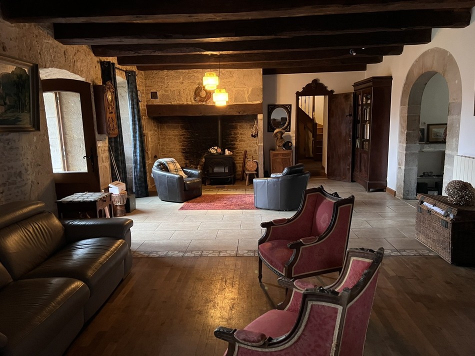Like any typical Quercy farmhouse, this property comprises a stone house and several outbuildings, all enclosed within a single walled garden. The imposing and characterful house has been extended with a contemporary addition, housing a superb, light-filled eat-in kitchen with unobstructed views across the valley. On the garden level, you will find cellars and a room that could serve as a bedroom or office, with direct access to a landscaped garden featuring a pond (ideal for fish or a water garden). The main living area, accessed via a remarkable covered terrace (a typical feature of the region), opens onto the kitchen. It extends into a utility room and a spacious living room of approximately 50 square meters, complete with a fireplace and a scullery, as well as a bedroom and a shower room. Upstairs, a landing used as a living room, two additional bedrooms, and a bathroom complete the sleeping area. Within the grounds are two outbuildings: a former pigsty, original and authentic, and a two-story hay barn, offering approximately 150 sq m per level, ideal for a variety of uses (garage, storage, workshop, future conversion). The property sits on over half a hectare of land in a peaceful setting. It enjoys a commanding position above the renowned Célé Valley, in a secluded hamlet, guaranteeing tranquility and privacy. It is located 10 km from Figeac and only 3 km from Quercy-Pole. Energy performance certificates (DPE) are currently being prepared.