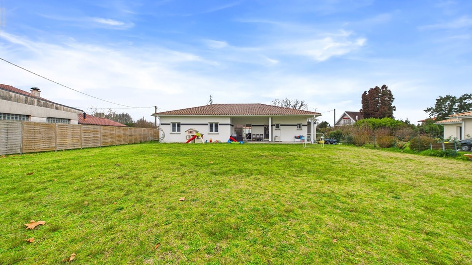 This charming single-story house of 141 m² is built on a flat plot of approximately 1000 m² and offers spacious rooms and a particularly functional layout. Located in a quiet residential area in Tercis-les-Bains, near Oeyreleuy, it is just 10 minutes from the center of Dax and close to all amenities. The house is centered around a large, light-filled living area of nearly 70 m², ideal for entertaining. The sleeping area comprises four bedrooms, a large bathroom equipped with a corner bathtub and a walk-in shower, as well as a master suite of approximately 20 m² with a shower room and dressing room. This suite has been cleverly designed to meet the needs of the owner, a childminder, thus offering considerable flexibility. A garage converted into a laundry room, a pantry, and a large garden complete the property, situated on an easy-to-maintain plot. Comfort and amenities include: - Secure gate with video intercom - Ducted heat pump heating with central thermostat and individual room controls - Thermodynamic water heater - Exterior carport and several parking spaces. The house is located in a quiet residential area, a few minutes from Dax, close to amenities and in the heart of a rapidly developing area, particularly with the new Dax golf course project, enhancing its value. A slight noise level during peak hours, due to the proximity of a busy road, should be noted, as well as some cosmetic finishing touches, offering the opportunity to personalize the property at minimal cost. A comfortable, functional, energy-efficient and almost turnkey property, representing an excellent opportunity at this price in the area, both for a main residence and for a long-term investment.