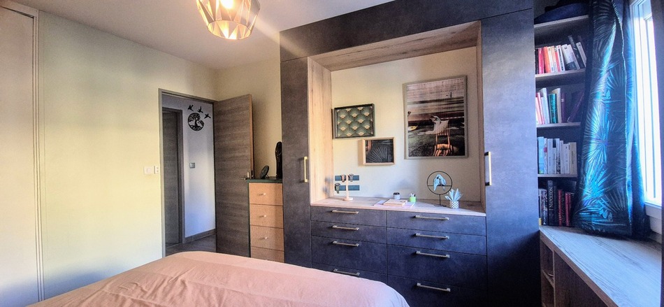 Exclusive listing: 123m² house located in a charming, typically Catalan village, 15 minutes from Perpignan, 20 minutes from Spain, and not far from the beaches and coves of Collioure. This vibrant village is appreciated for its peaceful environment and numerous shops, including a school, medical center, supermarket, restaurants, and many other amenities. This warm and bright house is situated at the end of a cul-de-sac in a very quiet neighborhood, offering a peaceful and green living environment. Built on a 365m² plot, it offers approximately 123m² of living space and an additional 30m² of usable space, as well as a 7x3.5m fiberglass swimming pool with a south-east facing wooden deck. From the moment you enter, you'll be captivated by a spacious, bright, and inviting living area of approximately 59 m², comprising: a high-end, modern, and fully equipped open-plan kitchen a comfortable living room with a wall-mounted LED display cabinet and a stylish TV unit a dining room with French doors opening onto the surrounding natural landscape and woods a guest WC. On the bedroom side, a hallway leads to a bedroom with a dressing room of approximately 12.5 m², as well as a second bedroom of approximately 15.50 m², also with a custom-made dressing room. You'll also find a spacious bathroom with two separate vanity units/mirrors, a walk-in shower, a corner whirlpool bathtub, and a WC. Upstairs, there is a third bedroom of approximately 12 m² with a mezzanine offering unobstructed views of the woods. Additional features: A garage with a mezzanine of approximately 15 m² and an outdoor parking space for one car, A laundry/pantry of approximately 8.5 m² with large cupboards, A fully equipped and secure summer kitchen with: a wood-fired pizza oven, a bar, a Thuir stone sink, a corner wood-fired barbecue, all opening onto a beautiful and large wooden terrace/garden area of approximately 65 m² and a swimming pool for enjoying pleasant evenings outdoors or barbecues with friends and family. The garden is mainly composed of Mediterranean species requiring very little maintenance, allowing you to fully enjoy moments of relaxation. Amenities: Air conditioning, fiber optic internet, Verisure alarm system, double-glazed PVC windows, solar-powered roller shutters. House built on a crawl space. No work required. A rare opportunity and a true haven of peace in this area that will appeal to those who appreciate quality features and comfort. Information on the risks to which this property is exposed is available on the Georisques website: www.georisques.gouv.fr