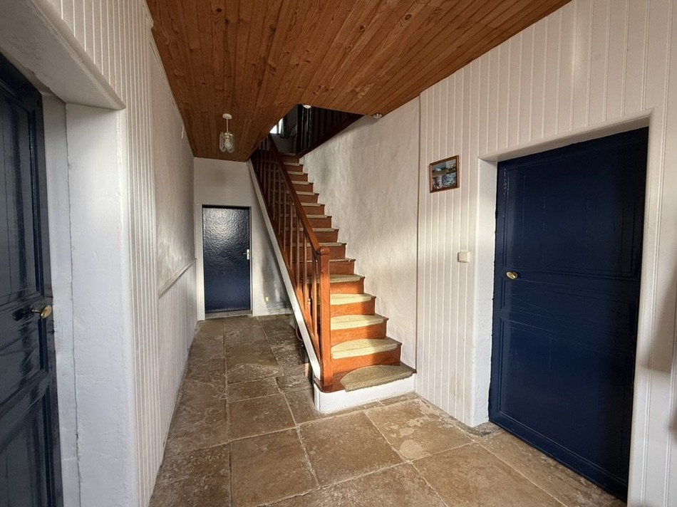Offering exceptional value for money, this substantial village property comprises a nicely restored three-bedroom main house, a four-bedroom guest house to refurbish, and an impressive range of outbuildings, providing excellent potential for income generation (subject to the necessary permissions). Occupying an enviable edge-of-village position, the property enjoys a south-facing aspect, with its windows and courtyard garden offering open views across the surrounding countryside. The main house has been tastefully restored, with improvements including a roof refurbishment and new water heater in 2018. Comfort is ensured by double glazing and a combination of electric thermostatic radiators and wood-burning stoves. The entrance hall retains its original flagstone floor, setting the tone for the character found throughout. From here, doors lead to a large farmhouse-style kitchen and a bright, welcoming living room featuring polished wooden floors and a beautiful original stone fireplace. Upstairs, there are three generously sized bedrooms, one of which benefits from an en-suite shower room, along with a family bathroom. Facing the main house across a grassed, walled courtyard are the guest house and additional outbuildings. The guest house, previously used for family accommodation, now requires refurbishment but offers considerable potential. It currently comprises a large open-plan living/dining area with kitchen space, four bedrooms, and a shower room. Attached to the main house is a substantial barn (the roof has been partially removed as it became unsafe) , complemented by five further smaller barns and workshops, making this an ideal property for those seeking storage, workshop space, or development potential. Additional features include a private well and an underground rainwater storage reservoir with its original hand pump. A rare opportunity to acquire a characterful property with space, versatility and significant potential for furrther improvement in a charming village setting.