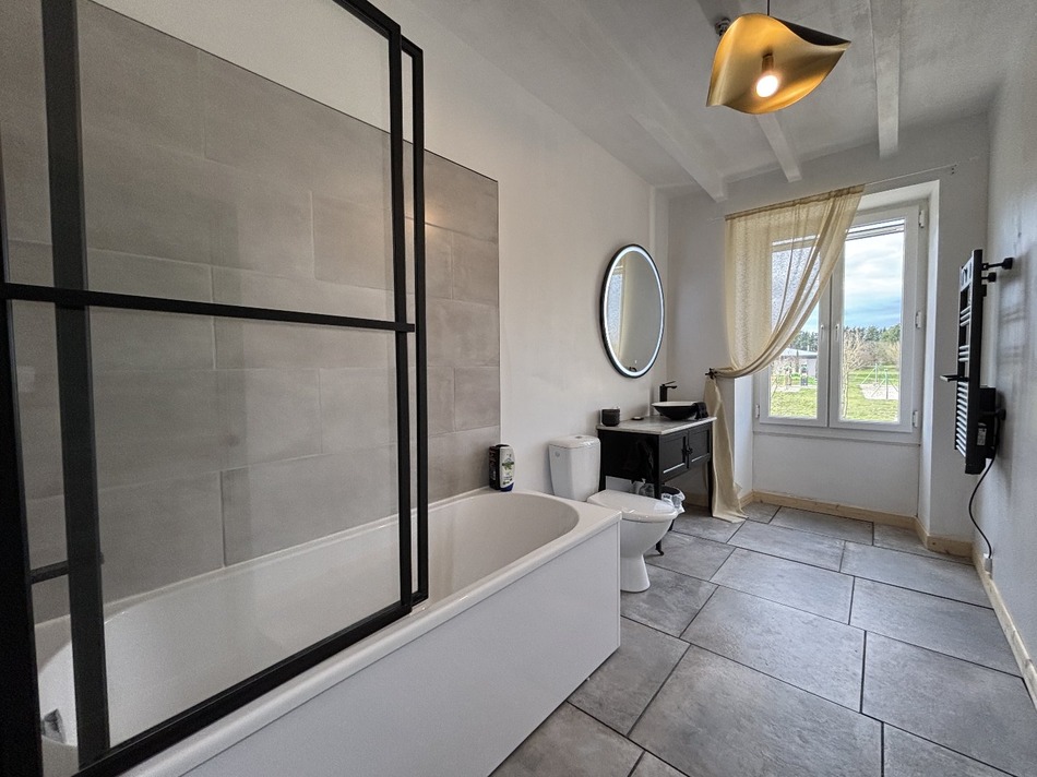 Located just a few minutes from the bustling market town of Ruffec, this charming Maison de Maître (masters house) is offered exclusively through and enjoys a delightful position in a picturesque and vibrant village with local amenities within walking distance. Tastefully refurbished by the current owners, the property offers large, spacious and airy rooms throughout, making it an ideal family home or an attractive holiday retreat. The property has recently been renovated including being double glazed, a new kitchen, two new bathrooms, extensive decoration works, etc. The property benefits from fibre internet and a conforming septic system. The ground floor features an elegant sitting room, finished to a high standard and enhanced with a log burner that creates a warm and welcoming atmosphere. The modern kitchen/dining room is generously proportioned with a large island, butlers sink and ample of fitted storage. In addition, on the ground floor is a separate laundry room and practical snug room providing excellent everyday functionality. Upstairs, the principal bedroom has immense charm with exposed stone wall and also it benefits from a beautifully appointed en suite bathroom with a large Italian-style shower and a contemporary freestanding bathtub and beyond the ensuite is a spacious dressing room. Two further double bedrooms are served by a shared bathroom, offering comfortable accommodation for family and guests. There is also a very large attic offering the potential for further habitable space if required. An attached and integral barn, currently used as a games room, adds further versatility, and to the rear is a summer kitchen area and an additional shower room with WC offers flexible potential with a little updating. The interior of the home is both elegant and inviting, blending character with modern comfort. Outside, the gardens are located to the rear of the property and are complemented by a large stone barn, two hangars, a garage, further small outbuildings and storage areas. Ample parking is available, and the overall layout offers potential for further development, subject to the necessary permissions, completing this appealing property in a sought-after location close to the market town of Ruffec. Ruffec is a lively and welcoming market town in the Charente, popular with both local residents and international buyers thanks to its strong sense of community and excellent amenities. The town centres around an attractive historic core, with cafés, restaurants, shops and a weekly market that gives Ruffec a vibrant, year-round atmosphere. Well known for its practicality as well as its charm, Ruffec offers schools, medical facilities, supermarkets and sports amenities, making it a convenient place to live full time or enjoy as a holiday base. The town also benefits from a train station with direct links to Angoulême and Poitiers, providing easy access to the TGV network and onward travel to Paris and beyond.