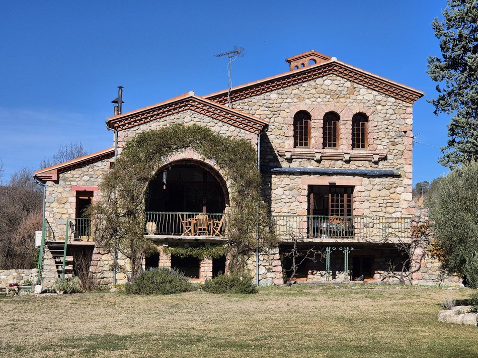 CHARACTERFUL MAS A rare opportunity presents itself with this splendid residence of 308 m² of living space, 501 m² of total floor area, offering breathtaking views of the mountains and the Canigou peak in the Catalan village of Fuilla in the Pyrénées-Orientales. This property was designed with meticulous attention to detail, focusing on solidity, comfort, and elegance. Noble materials, generous volumes, and timeless architecture testify to the expertise and exacting standards of its illustrious builder, the aviator Paul Bellonte, an emblematic figure of French aviation after the Second World War. Nestled in the heart of a vast, perfectly maintained 33,630 m² wooded park, offering complete privacy, it is ideal for nature lovers, as well as for family projects or a prestigious residence. The property benefits from a privileged natural setting at the foot of a stream, which brings calm, coolness, and serenity, creating a soothing atmosphere and giving this place a unique and authentic character. The main part of the property comprises five large bedrooms, including a beautiful master suite with its own bathroom. There is also a bathroom, three shower rooms, five toilets, three kitchens, and a large main living area with several terraces overlooking the Canigou mountain. The property also includes a comfortable, independent 75 m² apartment, ideal for friends, family, or as a rental property. In the basement, there are two large enclosed garages, a workshop, and a spacious vaulted cellar, ideal for wine enthusiasts and collectors, or even for conversion projects. Finally, this residence is perfect for those seeking a privileged living environment, an exceptional property combining history and authenticity, spaciousness, comfort, and a preserved environment. Information on the risks to which this property is exposed is available on the Georisques website: www.georisques.gouv.fr