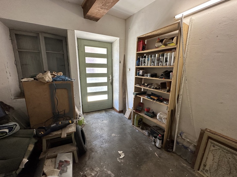 Built in 1750, this handsome house retains original architectural features such as roof genois and stone arches. The house benefits from a spacious garage (66m2) running the length of the house, a small courtyard, and ample living space to accomodate four or five bedrooms. The first floor comprises of a light-filled living room / kitchen and two bedrooms with views of the Montagne Noire. The second floor contains one bedroom with ensuite bathroom, and two more large rooms in need of complete renovation. Whilst the property is quite sound, structurally, most rooms need either a cosmetic re-fit or complete renovation. This house has the potential to become a large, handsome home with useful garage space in an attractive corner of lovely Caunes Minervois.