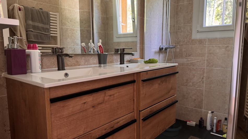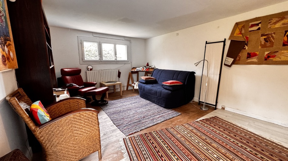 In a small village near Saint Cirq lapopie with its primary school and a few shops, come and discover this atypical house of approximately 110m² made up of 3 bedrooms including a master suite on the ground floor, a beautiful bright living/dining room with approximately 23 m2, a closed and equipped kitchen of 10.50 m2, a bathroom. The living space is located on the first floor, with access to a very pleasant balcony which serves the kitchen and the living room, allowing you to set a table for a breakfast facing Saint cirq lapopie. On the ground floor, in addition to the master suite, you will find a very large entrance, a laundry room, a toilet and a room giving access to the rear of the house, garden side. The house benefits from an adjoining garage and a small outbuilding ideal for DIY projects. All in very good condition with double glazing, mains drainage and solar gate. The land of approximately 1149m² is very nicely wooded, flat with numerous parking spaces. Quiet with little vis-a-vis, it has all the assets to create a favorite during a visit.