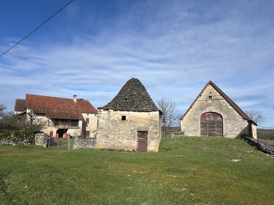 Au cur d'un environnement préservé et sans vis-à-vis, cet ancien corps de ferme implanté sur plus de 6 hectares de terres attenantes et bénéficiant de ressources en eau naturelles rares (puits, mare et source) offre un fort potentiel pour un projet agricole, équestre ou familial. La propriété se compose de : Une bâtisse principale en pierre (ancien corps de ferme) à rénover ou à conforter selon vos envies. Bâtie sur de nombreuses caves, elle offre actuellement une partie habitable de plain pied avec une pièce de vie (salon salle-à-manger) donnant accès à un très beau bolet, une grande chambre, une vaste pièce actuellement utilisé comme deuxième chambre (avec une cheminée), une cuisine (dans l'ancienne souillarde) et arrière cuisine, une salle de bains avec baignoire, douche et wc. Une autre partie de la maison avec un accès indépendant pourrait être aménagée en studio indépendant. Les combles sont isolées mais pourraient tout à fait être réaménagées car elles bénéficient d'ouvertures déjà existantes. La propriété offre de nombreuses dépendances : . Grand hangar où l'on peut stocker le foin, tracteurs,engins agricoles (ou autre..). . une ancienne étable porcine avec une petite avancée/terrasse couverte . un four à pain traditionnel . une grange : ancienne étable sur deux niveaux de plus de 150m² . une cazelle en pierre (élément patrimonial rare) . une ancienne bergerie servant actuellement de garage L'ensemble s'inscrit dans un cadre naturel exceptionnel, idéal pour une activité de gîtes, chambres d'hôtes, élevage, permaculture ou simplement pour profiter d'un vaste espace de liberté. Amoureux de nature, de pierre et de projets authentiques, ce bien est fait pour vous si vous désirez acquérir un bien de caractère avec un fort potentiel d'aménagement, le tout dans un environnement calme et préservé. Les informations sur les risques auxquels ce bien est exposé sont disponibles sur le site Géorisques : www.georisques.gouv.fr