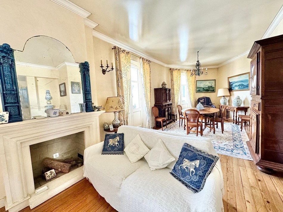 Just steps from the ocean, this 142 sq m apartment in a character building offers a combination that has become rare in Biarritz: a prime location, exceptional proportions, and period charm. Original parquet flooring, high ceilings, abundant natural light, and generous rooms create an elegant and welcoming living space, ideal as either a primary or secondary residence. A highly sought-after feature in the city center: a quiet, shared courtyard and a cellar. Ultra-central location, 142 sq m spacious rooms, beach and shops within walking distance. A rare find in this area. Don't miss out!