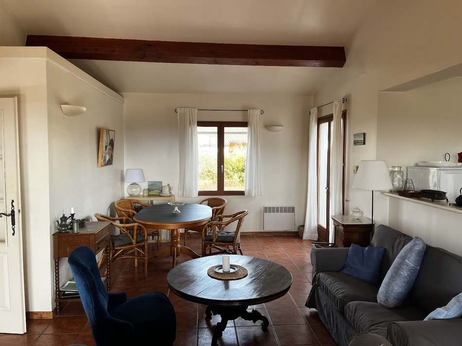 Treziers. Located in a pleasant and lively village near Mirepoix, this charming single-story house features a large living room with a very high ceiling, a fully equipped open-plan kitchen, a laundry room, two bedrooms, a shower room, and a toilet. It's surrounded by a beautiful, well-established garden with several terraces and views of the Pyrenees and surrounding countryside.