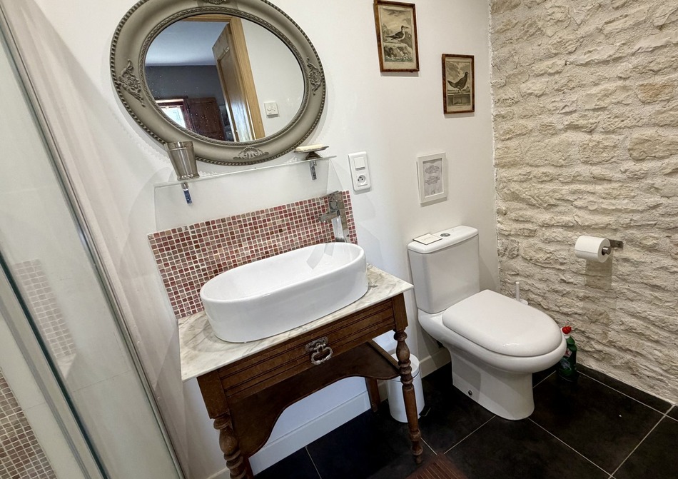 You will fall in love with this superb 4 bedroom property, located in a quiet hamlet yet only 4 km from the charming town of Matha with all amenities. The oldest house in the village, it dates from the 16th century and is steeped in history. The owners have carefully renovated it, retaining many original elements the beams, the exposed stones and the tower have been redone. Part of the walls are half-timbered, which is extremely rare in such good condition. Decorated with taste, it is immediately habitable and offers modern comfort combined with originality. A bed and breakfast activity is entirely possible since there are 2 staircases and the house can be separated into 2 independent parts if necessary. The swimming pool is a real plus, as is the stream that runs through the garden Combine all this with a pretty, well-kept garden, you have everything you need. On the ground floor, you will find an entrance hall, a very large and bright living room, a large kitchen/dining room with fireplace and central island. A laundry room is located just behind the kitchen. An office and separate toilet complete the ground floor. Upstairs there are 3 bedrooms, all with en-suite shower rooms, to one side of the house. On the other side, there is a large master bedroom with a large en-suite bathroom with a claw-foot bath, shower and WC. Heating by underfloor heat pump on the ground floor In addition, there is a garage with a water and electricity supply. Mains drainage is planned for 2026. Who could ask for more? Information on the risks to which this property is exposed is available on the Georisks website: www.georisks.gouv.fr »