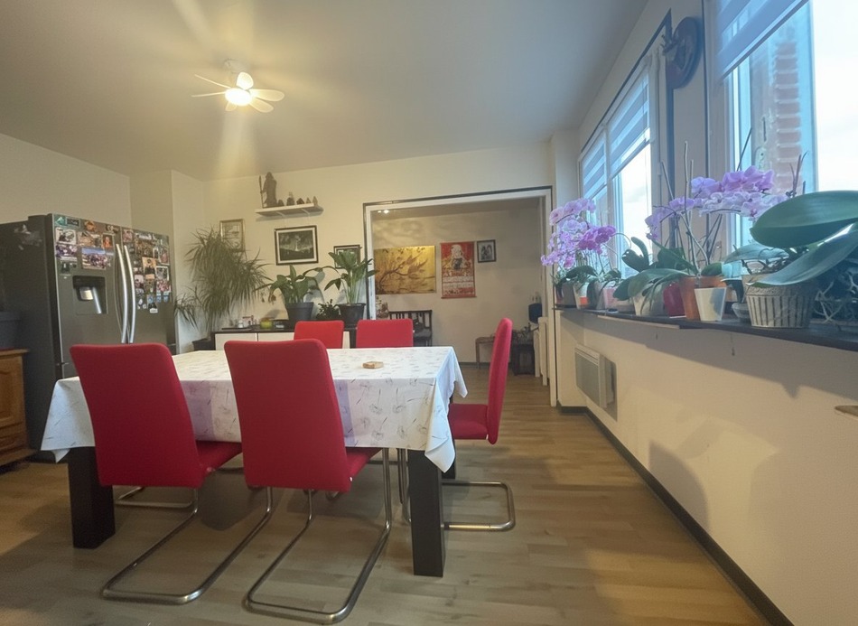 Appartement traversant au quatrième étage avec ascenseur . Entrée, cuisine aménagée ouverte sur un double séjour,2 chambres, placards de rangements, salle d'eau, wc séparé,cave. Appartement rélié au réseau de chaleur bois urbain. Les informations sur les risques auxquels ce bien est exposé sont disponibles sur le site Géorisques : www.georisques.gouv.fr »