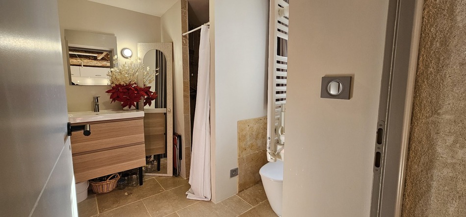 Are you looking for a peaceful house surrounded by nature, a property requiring no work, completely renovated with high-quality, eco-friendly materials? I've found a gem for you! This stone and wood house with its dovecote comprises: on the garden level, a pleasant living room with a fully equipped kitchen of approximately 44m² with underfloor heating and travertine flooring a bedroom of approximately 14m², a bathroom with shower and bathtub, a separate toilet, and a utility/laundry room. On the first floor, there is an attic bedroom, an office, and a shower room. In the dovecote, there is a bedroom of approximately 14m² with a heated wall and its magnificent exposed beams. In the outbuilding, a cozy, independent apartment will charm you with its many possibilities. There is also a second outbuilding, a workshop-style apartment with a large glass roof. All this on a plot of over 2 hectares with a rainwater harvesting cistern, well, greenhouse, stone walled driveway. A haven of peace requiring no work, ready to welcome you! Sanitation compliant with 2024 standards.