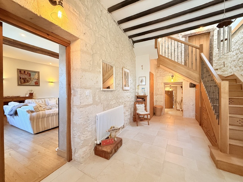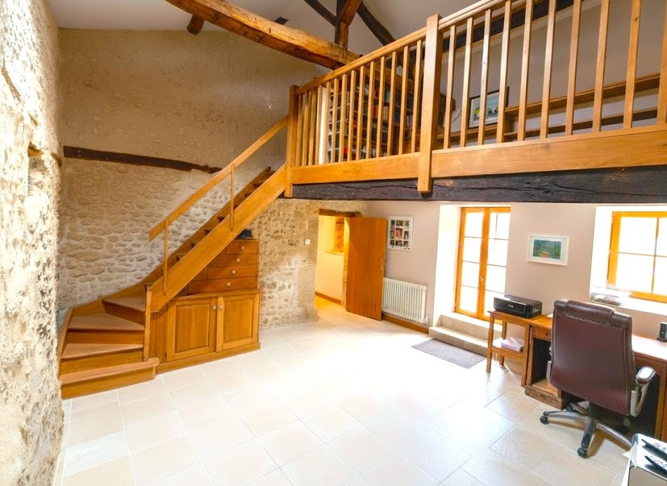 Tucked away at the end of a quiet hamlet, near to the vibrant village of Aubeterre-sur-Dronne, this beautifully renovated country (semi-detached) home offers the kind of setting many are searching for peaceful, private, yet effortlessly connected. From the garden, your eye naturally drifts across the rolling countryside, a daily reminder that charm and life are always close by. The house has been completely renovated by its current owners with a clear eye for quality and comfort. Every detail has been addressed, complete insulation, heating (heat pump), wooden double-glazed windows, thermodynamic hot water, water tank of 28.000m3, resulting in an energy-efficient home (DPE B) that is ready to enjoy immediately. With approximately 250 m² of living space, the house stands out for its generous volumes and high ceilings, creating a wonderful sense of space and light throughout. Inside, character features such as exposed beams, natural limestone walls and solid oak flooring blend effortlessly with a clean, contemporary finish. The ground floor offers a large, fully equipped kitchen with dining area a natural gathering place alongside an impressive living room with a wood-burning stove set into a stone fireplace. A study, a library opening onto the garden (perfect for long summer evenings or a game of pétanque), a spacious entrance hall, an utility room, toilets and several storage rooms. Upstairs, the home continues to impress. Four generous bedrooms, three of which benefit from their own private bathroom, offering both comfort and independence. The master suite enjoys a south-facing terrace a quiet spot to start or end the day. Outside, the enclosed 3,900 m² garden is bathed in sunlight, with different areas to relax, entertain or simply enjoy the surrounding nature. And then there is the barn. Attached to the house, this remarkable space of approximately 290 m² features a stunning framework and offers endless potential whether for creative projects, garage, additional living space or simply as an architectural statement. This is a home that strikes a rare balance: authentic yet comfortable, spacious yet welcoming, private yet close to one of the most beautiful villages in the region. A property not just to own, but to live.