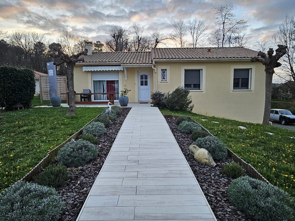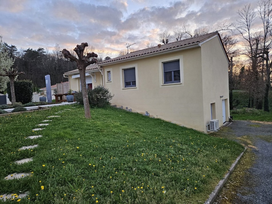 Ideally located in a peaceful setting yet close to shops and services, this charming house offers a comfortable and functional living environment. The main house, all on one level with a finished basement, comprises an entrance hall opening onto a bright and spacious open-plan living area with a lounge, dining room, and fully equipped kitchen, with double access to the terrace for enjoying the outdoors. The sleeping area includes three bedrooms, a bathroom, and a separate WC. The finished basement provides additional space that could easily be converted into a self-contained studio. It includes a bedroom, a living area, and a shower room with WC. A garage with an electric door completes the property. Outside, you will enjoy a fenced and landscaped garden with an electric gate, offering privacy and tranquility. Comfort features include: air-to-air heat pump heating, double glazing, and a water softener. An ideal property for a family or for a project with independent living space, in a highly sought-after area. Information on the risks to which this property is exposed is available on the Georisques website: www.georisques.gouv.fr
