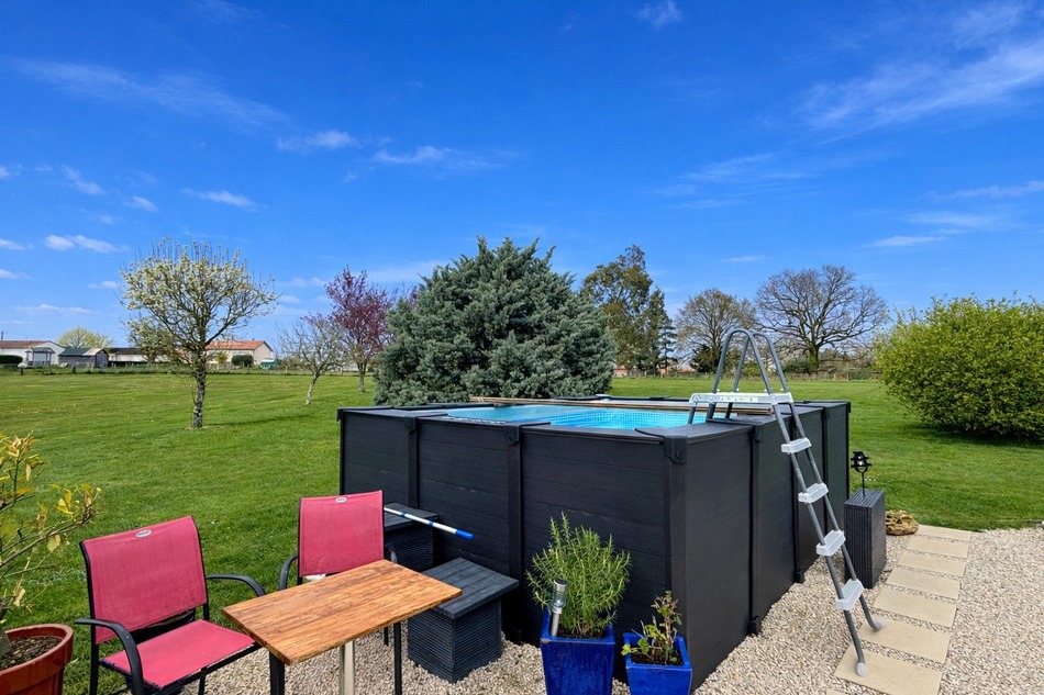 This 3-bedroom renovated home has stunning panoramic views of the village of Chatain and the surrounding countryside, comes with a large garden which is all enclosed, an above ground pool and a superb pool house. The property features a large sitting/dining room (with a log burner) and at one end a modern fitted kitchen with integrated appliances including an oven, dishwasher, hob and an extractor. This spacious open plan room has patio doors leading out to the terrace with spectacular panoramic views of the garden and surrounding countryside. In addition, on the ground floor there is a master bedroom with en ensuite bathroom/wc, two further double bedrooms which both have built-in wardrobes, a family shower room/wc with a large walk-in shower. There is also a utility room and an attached garage which could offer further scope for more habitable space if required, with the applicable planning permission. The property benefits from oil central heating, double glazing and fibre broadband is available. Outside, there is gated access onto the property with plenty of parking on the gravelled courtyard. The large garden of approx. 8400m2 surrounds the property has an above ground pool of 8X4 meters and adjacent to it is a great pool house offering a superb entertaining space for alfresco dining. There is also an outbuilding in the garden which is a great space for storage and to the rear of the building is a small hangar/woodshed. The property is approx. a ten-minute drive from the charming and welcoming market town of Charroux, offering everyday amenities including shops, a bakery, café, restaurant, pharmacy and a weekly market. The larger town of Civray is under 20 minutes away which offers further amenities on a larger scale. Châtain is a small, peaceful rural village located in the north of the Charente, close to the border with Vienne. Surrounded by gently rolling countryside, fields, woodland and quiet country lanes, the area offers a calm and authentic setting typical of rural southwest France. The larger cities including Angoulême and Poitiers are within easy reach, providing high-speed rail connections, extensive shopping and cultural attractions. Combining rural tranquillity with convenient access to local amenities, the property is in a very attractive location, with superb views, for those seeking the charm of the French countryside while remaining well connected to nearby towns. Contact us today to arrange a viewing and discover the full potential of this superb property.