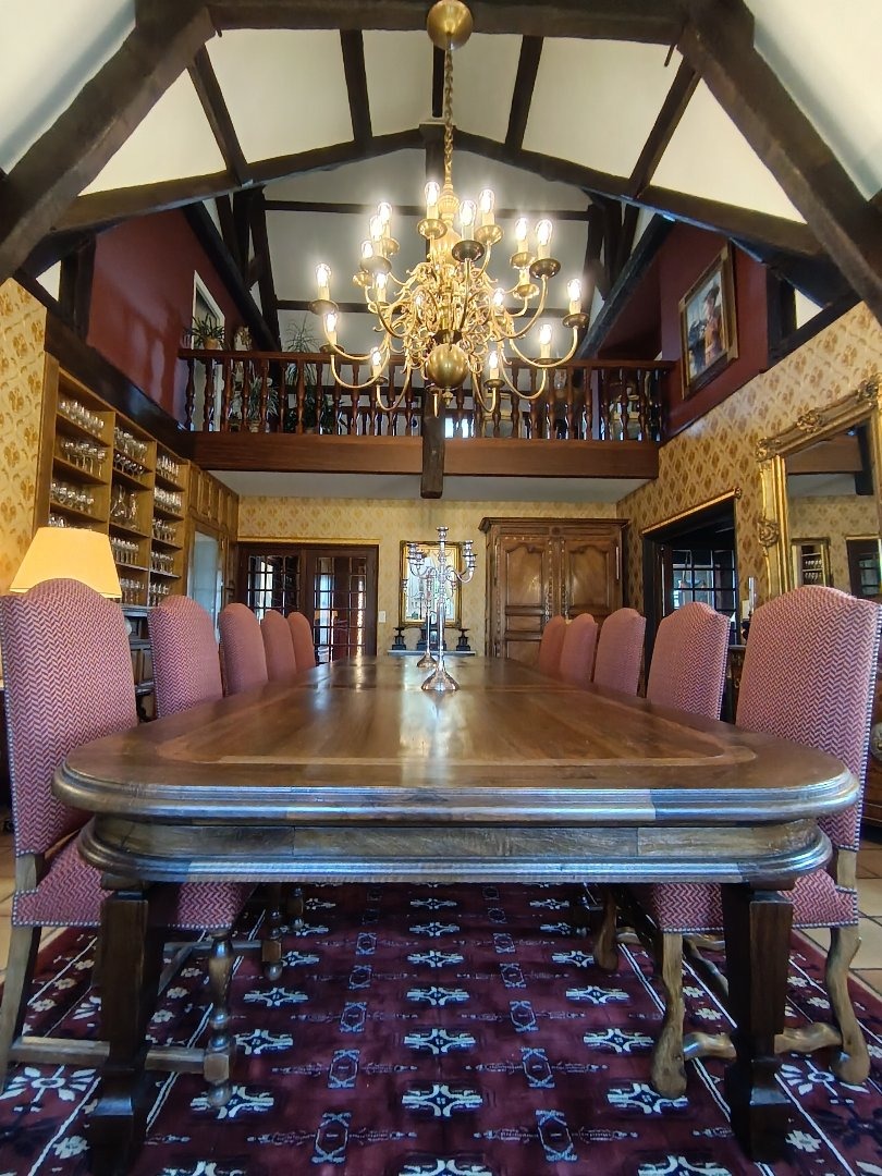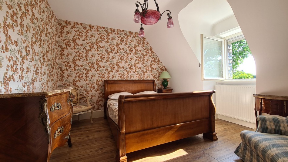 In northern Finistère, in the Haut-Léon region, this elegant and characterful property perfectly embodies the spirit of Breton homes, combining noble materials, remarkable proportions, and a gentle way of life. Built in 1977 in a manor house style, the house, with a basement, offers approximately 310 m² of living space and 12 generously proportioned rooms. Upon entering, one's gaze is immediately drawn to a spiral staircase crafted from exotic wood, a true centerpiece that sets the tone for a refined interior. The warm and authentic living room, bathed in natural light, is centered around a majestic granite fireplace and a French-style ceiling that underscores the timeless character of the space. The cathedral-ceilinged dining room, bathed in light, opens onto an elegant mezzanine, creating a particularly pleasing sense of space and height. The kitchen, crafted from solid oak, is enhanced by a ceramic worktop and backsplash, combining aesthetics and functionality. A study/library completes the ground floor, where the Artois stoneware floors add a further touch of authenticity. Designed to accommodate family and guests with complete independence, the property also includes a ground-floor apartment comprising an entrance hall, a bright living room with an open-plan kitchen, a bedroom with built-in wardrobes, a shower room, and a toilet. Upstairs, accessed via warm parquet flooring, the sleeping area offers four bedrooms with storage, a living room, a shower room, a bathroom, two toilets, and a dressing room, providing spacious and perfectly organized living comfort. A large basement, including a garage, workshop, wine cellar, and a boiler/laundry room, completes this well-appointed property. Set on 2 hectares, the property opens onto an elegant wrought-iron gate with granite pillars, followed by a tree-lined driveway. The landscaped garden, enhanced by two cascading ponds, a well, two carports, and ornamental hedges, extends the tranquility of the surroundings. The fenced meadows, crossed by a stream, and a paddock stable will particularly appeal to nature and horse lovers. The house has undergone significant energy-efficiency renovations, enhancing thermal comfort and energy performance to meet contemporary standards. Located just outside a small village, it enjoys an ideal location: 5 minutes from amenities, 20 minutes from Brest, 15 minutes from Morlaix, and 20 minutes from the Côte des Légendes (Coast of Legends). A rare property, combining heritage charm with modern amenities for an authentic lifestyle in the heart of FINISTERE.