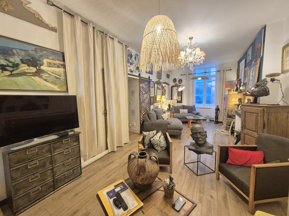 Where art meets history: just around the corner from the Cathedral, beautiful 97 m² T3 on the 1st floor of a well-kept building. Fully renovated (electrics, flooring, paint), it combines unique character with modern comfort. Layout: Spacious, bright living room with an artistic vibe Independent kitchen 2 bedrooms, one with mezzanine (office/library) Large shower room Separate WC Beautiful roof terrace shared with only one neighbor, offering views over Béziers' rooftops to the sea Highlights: prime central location top restaurants, cafés and cultural life on your doorstep quality finishes quiet building. Perfect for creatives, aesthetes or buyers seeking a distinctive property. Rare on the market viewings by appointment.