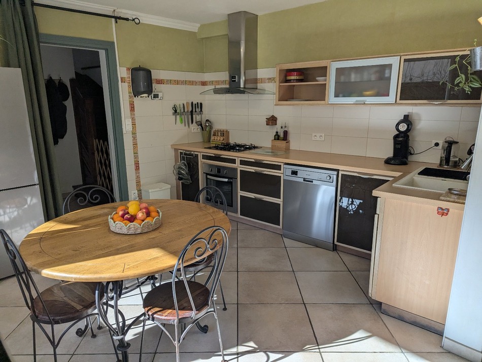Exclusively available through Arieg'immo By , in the heart of the Cadirac district in Foix, this 123 m² house is situated in a quiet cul-de-sac. The layout is as follows: Ground floor: Kitchen, living room opening onto a southeast-facing terrace, entrance hall, and utility room. Upstairs: Three bedrooms ranging from 11 to 17 m², two of which share a balcony, shower room, WC, hallway, and storage. The property features gas central heating, a wood-burning stove, a mechanical ventilation system, and is connected to mains drainage. The house boasts a pleasant, sunny garden of approximately 300 m² with mature trees and a large terrace. It also includes a private parking area for two vehicles and a garage with an attic that could be converted. If you're looking for the convenience of being close to town while enjoying the tranquility of the countryside, this house is perfect for you. Information on the risks to which this property is exposed is available on the Georisques website: www.georisques.gouv.fr