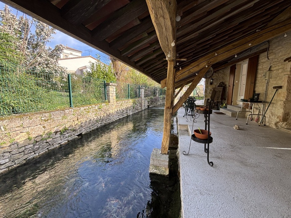 Situated in one of the most sought-after locations in the pretty market town of Ruffec, this stunning property enjoys a truly picturesque setting with beautiful views over its garden and the gently flowing stream that borders the grounds. Despite its peaceful and private location, the house is ideally situated just a short walk from local shops, schools, cafés, restaurants, and bars, offering a perfect balance between convenience and tranquillity. The property has benefited from extensive, high-quality renovations, including the installation of a fully compliant septic system, complete roof refurbishment, upgraded insulation, and modernised the electrical and plumbing systems. The interior has been thoughtfully redesigned to include a contemporary fitted kitchen and two bathrooms, one on each floor, ensuring both comfort and practicality. Presented in excellent condition throughout, the house is ready for immediate occupation with no further work required. The charming, covered terrace provides a true haven of peace, ideal for relaxing while enjoying the soothing sound of the nearby streaman increasingly rare feature in such a central location. The ground floor opens into a spacious entrance hall, currently used as a study, leading to a bathroom fitted with a washbasin, bath with shower, and WC. The bright and generous living room features tiled flooring and three patio doors opening onto the attractive garden, creating a seamless connection between indoor and outdoor spaces. This versatile room also offers the potential to create a fourth bedroom with minimal alteration while retaining a comfortable living area. A recently fitted kitchen and dining space adds further charm, offering ample storage along with a hob and an extractor. In addition, a second sitting room, which could equally serve as a ground floor bedroom, which has direct access to the covered terrace with superb views of the adjacent stream. Upstairs, a landing leads to two well-proportioned double bedrooms, both featuring parquet flooring and exposed beams, adding character and warmth. A modern shower room with a walk-in shower, washbasin, and WC completes the first floor. Externally, the property benefits from a gated driveway leading to a carport with a concrete floor, as well as a useful storage shed. Set within the impressive, attached garden, the grounds include an enclosed parkland-style garden bordered by a natural stream, enhancing the overall sense of serenity and charm. Ideally positioned on the edge of the vibrant market town of Ruffec, the property offers easy access to a full range of amenities including shops, schools, cafés, restaurants, and a train station. The larger cities of Angoulême and Poitiers are both within an hour's drive, while airports serving international destinations, including the UK, can be reached in under 45 minutes. This is a rare opportunity to acquire a beautifully renovated home in an exceptional riverside setting, combining modern comfort with timeless charm.