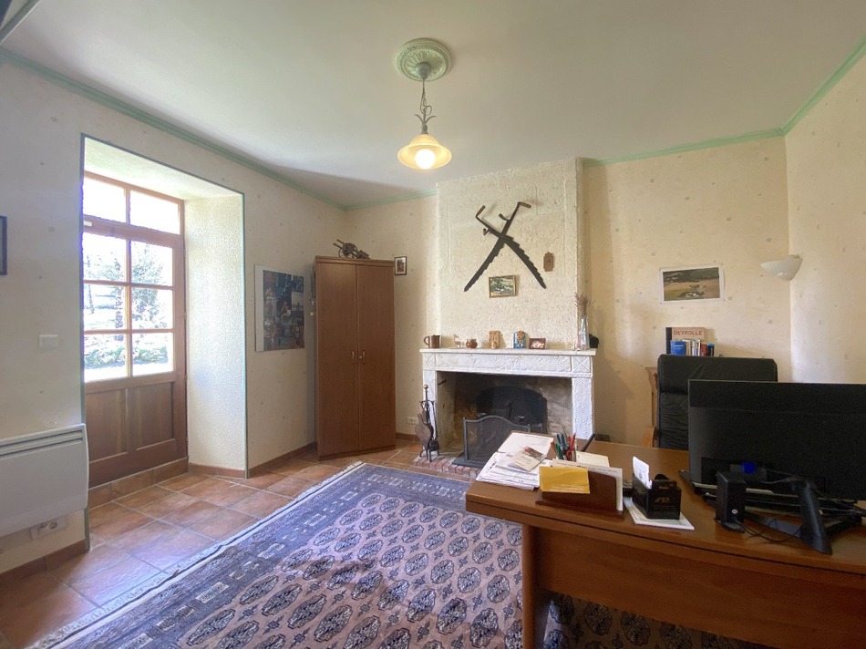 Location, location, location! This beautiful farmhouse is surrounded by a dream landscape. Without any nuisance, without neighbours, the beautiful village of Villebois-Lavalette with its fortified castle is only 4 km away. Typical for the farms of yesteryear, the dwelling house, the barns, the lean-tos, the sheds, the workshops bend around a vast interior courtyard, entirely closed by a wall, accessible by two gates. Only meadows and hilly fields on the horizon!! With a living area of 220m², the house consists on the ground floor of a kitchen open to the dining room of 34m², a living room of 24m², a living room of 30m² with an office and of a toilet. An extension of 74m² could be envisaged, as there are several rooms on the ground floor not yet put into condition. On the first floor a large landing leads to 3 bedrooms (16 to 22.23m²) and a shower room. The house is insulated, double glazed wooden frames, oil fired central heating, south orientation. A big plus for this property is the abundance of rural buildings such as the 516m² of closed and covered outbuildings all with electricity, plus the 2 hangars of 160 and 110m². This farmhouse also has an above ground swimming pool (sand filter, heat pump) and a water tower which supplies all the water. All on a plot of 2 ha. A very exceptional dominant property in such an exceptional location!