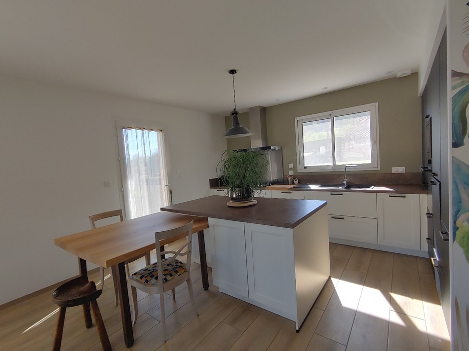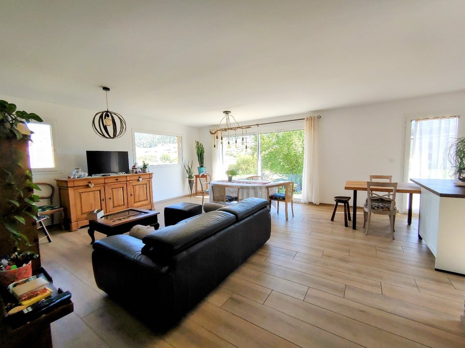 Single-story house built in 2022 panoramic views of the gorges. In a privileged setting, within a village offering all amenities, discover this single-story house built in 2022, providing a comfortable, modern, and functional living environment. Situated on a plot of approximately 1500 m², with a living area of approximately 90 m², the house has been intelligently designed with fluid circulation and optimized spaces. It is adapted for people with reduced mobility. Built according to the RE 2020 regulations, it benefits from excellent energy performance. It is equipped with a ducted air-source heat pump system, providing heating and cooling with even distribution throughout the house for optimal comfort all year round. An outbuilding of approximately 60 m² completes the property, comprising a garage and space that could be converted into a self-contained apartment, office, or rental unit. This recently built house, with its high-quality features, is ideal as either a primary or secondary residence, combining comfort, accessibility, and potential.