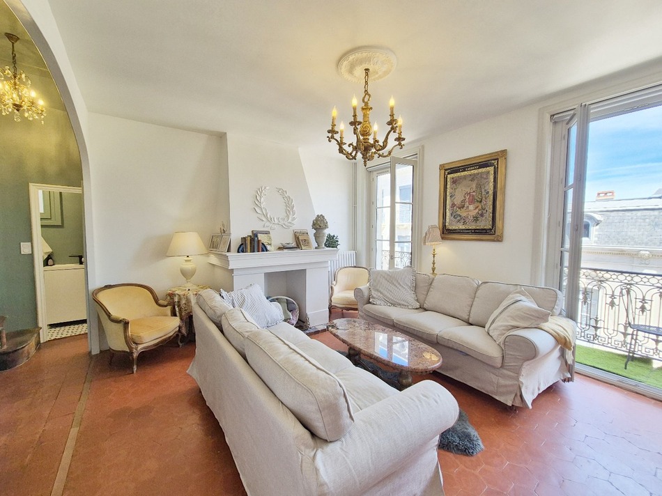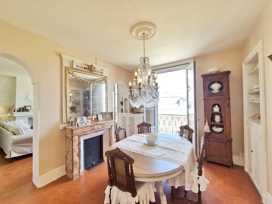 Prime, rare opportunity in the city's golden triangle. This elegant top-floor duplex (125 m²) occupies the 4th and converted attic of a Haussmann-style building with elevator, offering the best views in town: the townhall and its 2,000-year-old olive tree, the market hall and a vista toward the cathedral. Character-rich accommodation: beautiful entertaining rooms with continuous French balconies, plenty of original features including ornate stucco ceilings, original tomette terracotta floors and elegant marble fireplaces. The main level (4th) also includes a modern fully equipped kitchen, three bedrooms (one currently used as a library/office), a spacious contemporary shower room and a separate WC. A charming staircase leads to the converted attic: two connected rooms counted as one bedroom with its own well-designed shower room. Air-conditioning in the living area. An exceptional location and classic French character rare on the market. Contact us to arrange a viewing as soon as possible.