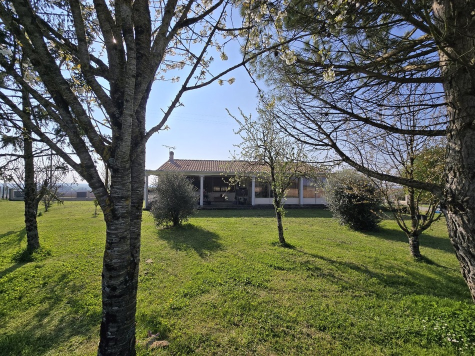This beautiful three bedroom property with a 150m2 hangar, three garages and wonderful panaromic views. Front balcony with views to the front. The property offers a spacious lounge with a unique dutch wood burner. The double doors to the rear open onto the a veranda, a bright space that leads directly to the covered terrace, ideal for al fresco dining. The kitchen/dining room is both functional and charming, with elegant bamboo countertops, a convenient breakfast bar, and a professional-grade Italian range cooker (5 gas burners and an electric/solid fuel oven). This space is complemented by a lovely view to the front. A separate toilet is also conveniently located nearby. The first floor comprises two peaceful bedrooms, both offering serene views to the rear, and a modern shower room with a practical double vanity. A dedicated door leads to the basement, a flexible space currently configured as a third bedroom, with a separate kitchenette, a shower room, and a toilet. The property includes three separate garages and an impressive 150 sq m (1,615 sq ft) barn with several sliding doors (up to 6 m (20 ft) wide), providing ample storage space for vehicles, workshops, or even a large motorhome. The ground floor features an integrated central vacuum system and a solar water heater. Access is secured by gates, with parking for two vehicles. The fully enclosed garden includes mature trees, fruit trees, and a new wooden garden shed.