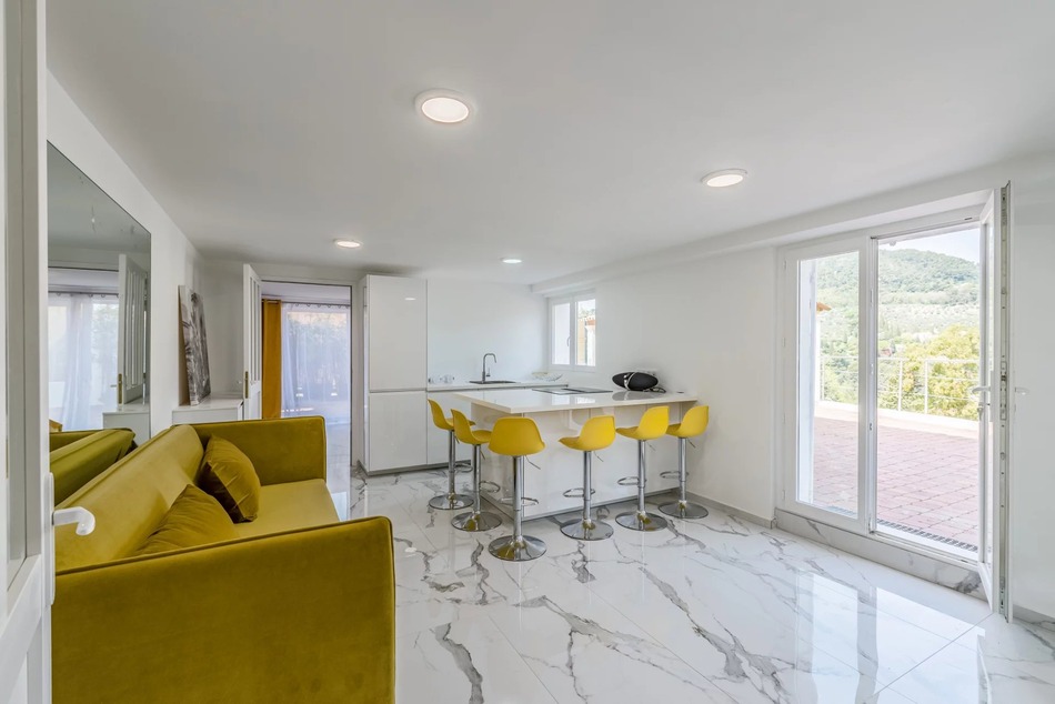 With a very nice view on the Grasse hillsides, in a calm and residential neigborhood, we find this completely renovated villa with two bedrooms and two bathrooms. A spaciuos living area with an open kitchen giving on a wide open flat sothfacing terrace. Ideal for handicaped people or people looking for a one-level villa. Very nice flat land of 800 M2 devided in two terraces with a panoramice view, absolute absence of any noise and in a very calm and peaceful area. Easy to make a swimming pool with his poolhouse. The real provencal countryside that everyone loves...