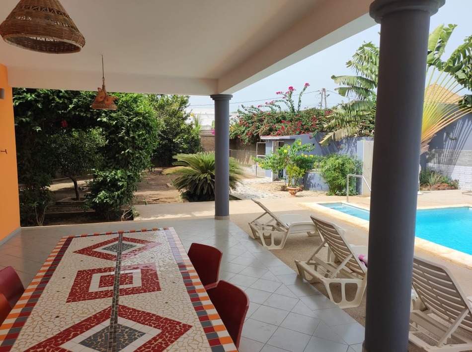 Cette propriété meublée est composée de 2 bâtiments et se trouve sur 1200m2 de terrain. Elle comprend également 2 studios indépendants ainsi qu'une piscine et comprend en tout 7 chambres. Située à la Somone dans un quartier calme et résidentiel. Egalement un garage et un appartement pour le personnel.