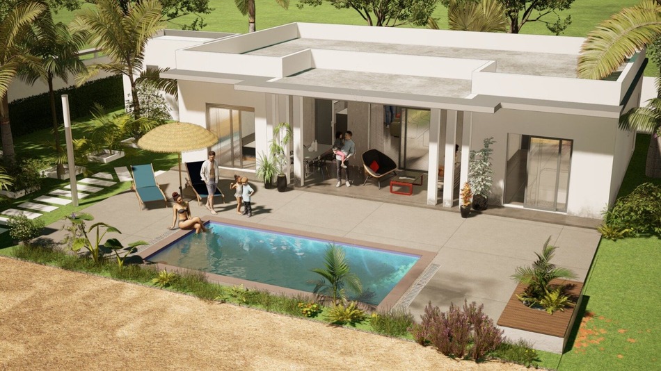 A SAISIR ! Séléction Sénégal vous propose de faire construire dans un domaine résidentiel une villa comtemporaine. Construction haut de gamme par un constructeur reconnu. La villa fait 90m2 de suface habitable, est composée de 2 chambres avec chacune sa salle d'eau et un dressing, ainsi qu'un grand salon, salle à manger, une cuisine US équipée avec son ilot central et une terrasse couverte de 36m2 .Délai de construction 6 mois maximum. Le terrain fait 300 m2 avec possibilité d'acquérir une surface plus importante . Piscine de 6m x 3m et un garage Cette villa peut etre construite en 3 chambres (surface habitabe : 102 m2) PRIX : FCFA soit Ces prix incluent le coût du terrain et de la construction, les frais de mutation et d'enregistrement, la demande de bail et le permis de construire