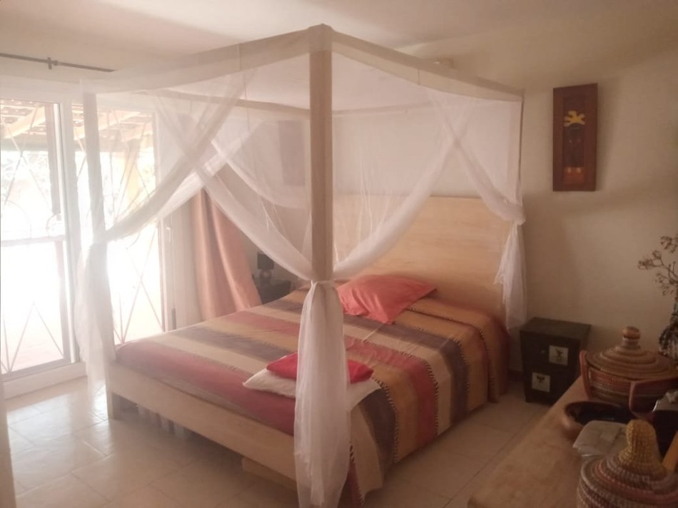 Located 3 minutes walk from the beach of the beautiful Le Lamantin Beach hotel and 5 minutes from the Auchan / Saly Center shopping center, this villa, for which the individual land title has been paid, is located in a peaceful, secure residence. The villa is made up of 4 bedrooms, 4 bathrooms, a living room with dining room and lounge, an open-plan kitchen, also an outdoor kitchen under the covered terrace overlooking an individual swimming pool and a wooded garden, as well as parking. car, all on a plot of 634m². Price: 193,000,000 FCFA / 294,207 (excluding cost of TF)