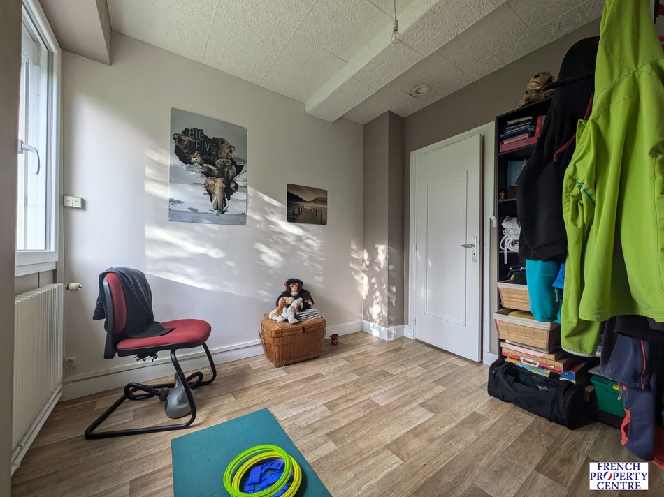 La maison dispose de 3 chambres, d'une cuisine aménagée, d'une arrière cuisine, d'une cave, d'un garage de plus de 30 m², ainsi que d'un grenier.