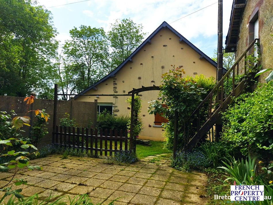 La seconde maison à rénover est de plain-pied, elle comprend : entrée, séjour - salon avec cheminée, cuisine aménagée, salle de bains, cellier, deux chambres.