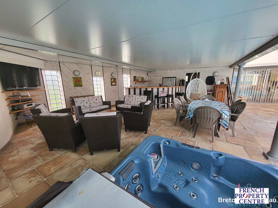 Discover this superb property in Montsûrs! It features a traditional home facing a lovely wooded garden. The four bedrooms, office, and two bathrooms of this house offer its occupants significant accommodation capacity, ideal for a family! Enjoy a large, bright living room, extended by an exceptional wellness area including a swimming pool, a jacuzzi, a gym, and a summer kitchen. Built on a plot of 1,235 m², this residence benefits from a peaceful environment while allowing walking access to the village's shops. A functional basement completes the property with a garage, workshop, and cellar. Don't miss this opportunity and come discover it without delay! Energy Class: D Its price is 354,000 Euros, including 14,000 Euros including tax in agency fees (4.12%) payable by the buyer. For more information, please do not hesitate to contact the et agency in Montsûrs at , specifying the advertisement reference 18050C.
