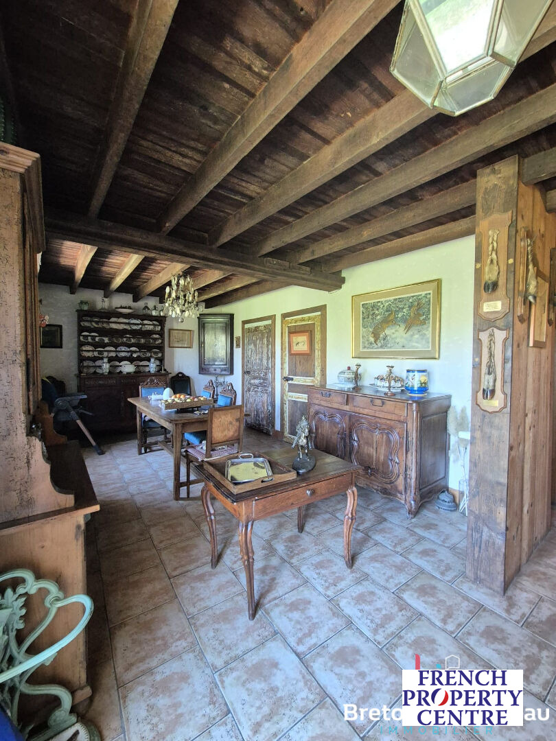 Located in Lonlay L'Abbaye in the Orne department, just a few kilometers from Domfront, discover this magnificent farmhouse for sale. Offering over 180 m² of living space on several levels, you will be charmed by its exposed beams and stonework. This farmhouse has been completely renovated and has retained all of its character. On the ground floor, you will find an entrance leading to a 51m² living room with a superb open fireplace, a fitted kitchen, a dining room, and a master suite. Upstairs, you will find three bedrooms and a bathroom. On the top floor, a large room used as a bedroom, an office, or a games room. Outside, you will enjoy several large outbuildings equipped for horses, several carports, and over 8 hectares of land with no close neighbors. Energy rating: D. Its price is EUR447,600 including agency fees (4.09%), including EUR17,600 including tax, payable by the buyer. For more information, please contact et Immobilier at , quoting reference 18071X. (4.09 % fees incl. VAT at the buyer's expense.)