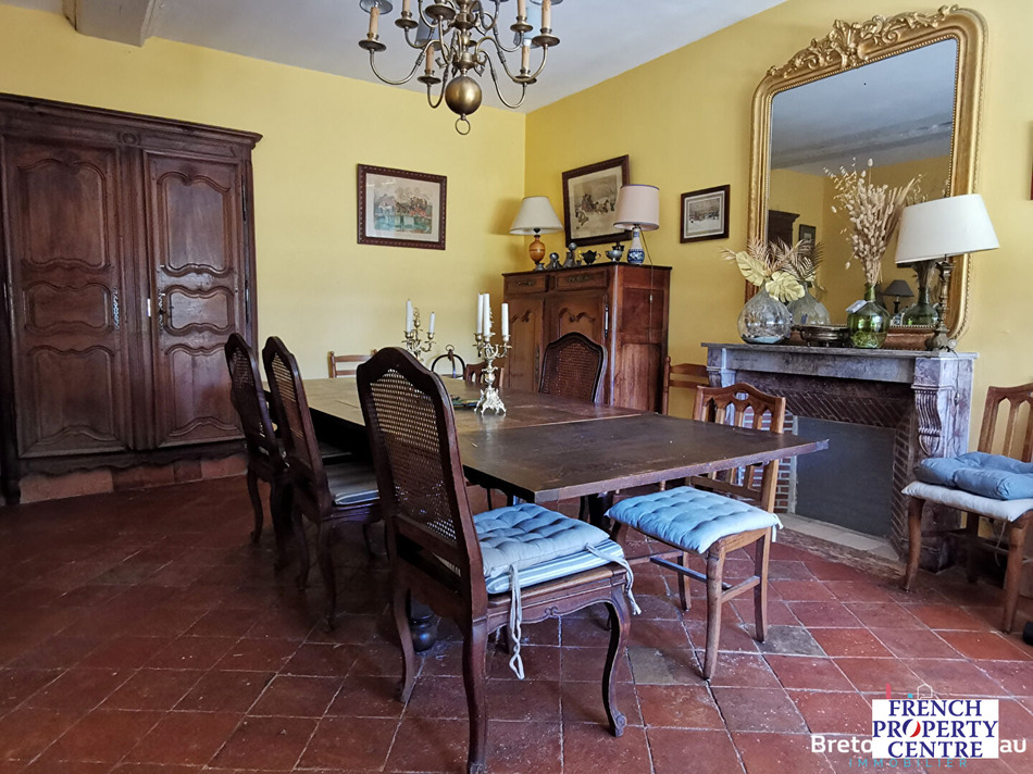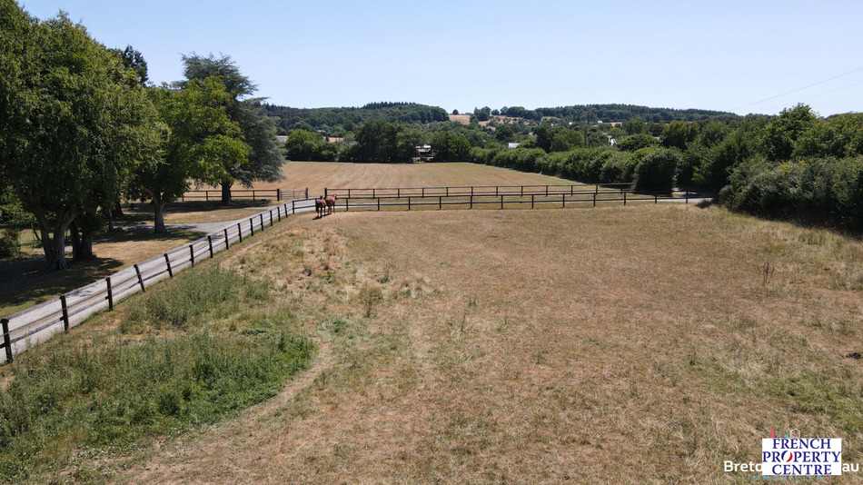 In Vimartin-sur-Orthe, in Mayenne and bordering Sarthe, come and discover this beautiful equestrian property on a plot of approximately 4ha. It includes a character house with a living area of 250sqm offering an entrance hall, dining room, living room with insert fireplace, kitchen, office, three shower rooms, a bathroom, a master suite suitable for people with reduced mobility, five other bedrooms including one in a row and three toilets. Outside you will enjoy an outbuilding of approximately 150sqm with terracotta tiles, beams, fireplace and kitchen; a second outbuilding including three boxes (10.5sqm each), horse shower, tack room, 3-seater electric walker and several sheds. To visit! Energy class: F. Its price is 299,650 euros including 14,650 euros including tax agency fees (5.14%) payable by the purchaser. For more information, contact the et Immobilier agency in Bais at , specifying reference 18171P.