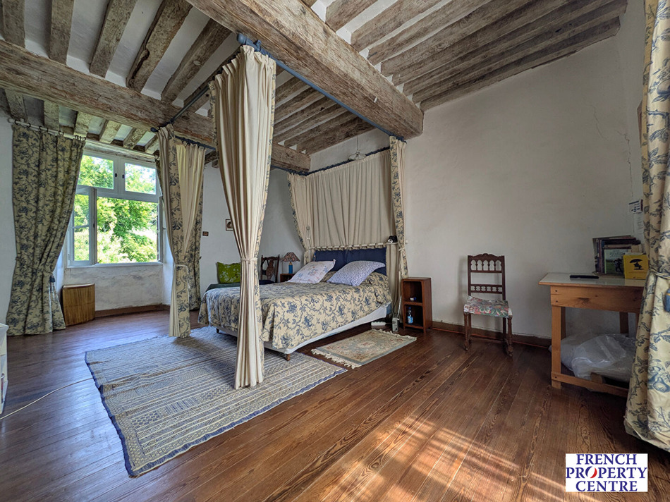 Implantée sur un terrain arboré de plus de 8 000 m², sans vis-à-vis, cette bâtisse en pierres apparentes et toiture en ardoise séduit par son charme intemporel : hauts plafonds, parquets anciens, tommettes, et de beaux volumes à réinventer.