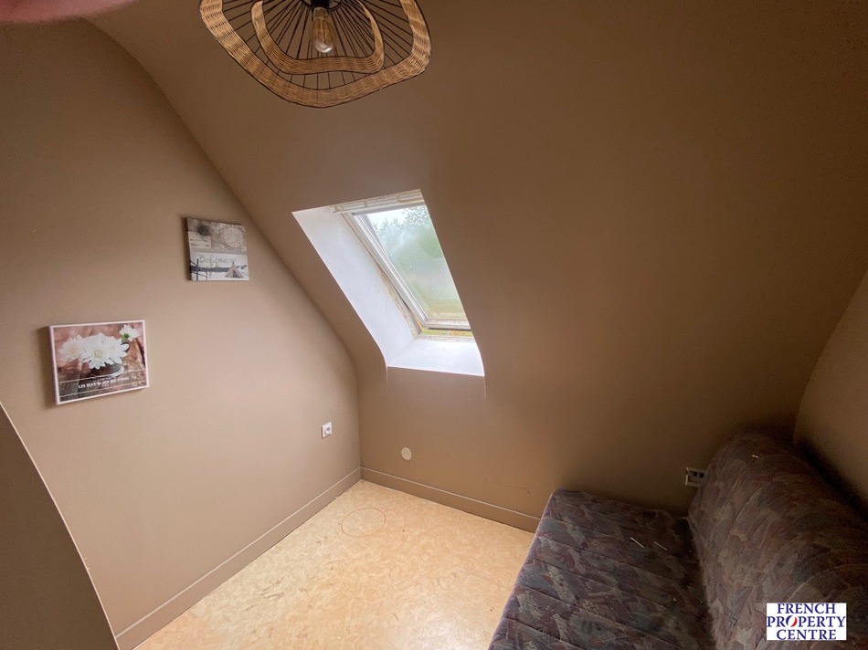 L'étage se distribue comme suit : palier, une chambre, un bureau, un WC / lavabo.