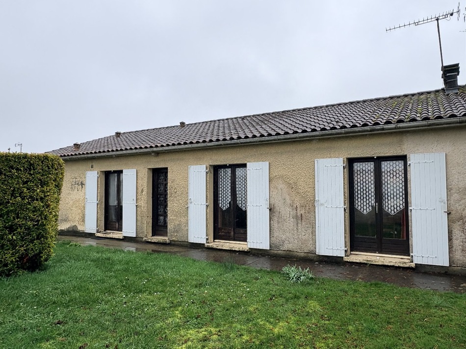 VOUS PROPOSE : Pavillon de plain pieds construction traditionnelle à 10 minutes de Cognac : Entrée desservant un beau séjour avec deux portes fenêtres, une cuisine indépendante avec son arrière cuisine, des WC indépendants et un coin nuit qui dispose d'une salle d'eau et de quatre chambres: caractéristique rare pour les constructions de cette génération ! Cette maison est agrémentée d'un garage attenant et de diverses petites dépendaces, et le tout est implanté sur une belle parcelle d'environ 1500m² intégralement close. Ce pavillon nécessite une remise au goût du jour complète mais l'ensemble est en bon état général. A découvrir rapidement ! Honoraires : 7 % TTC à la charge de l'acquéreur Prix hors honoraires d'agence : 130 000 Les informations sur les risques auxquels ce bien est exposé sont disponibles sur le site Géorisques : www.georisques.gouv.fr