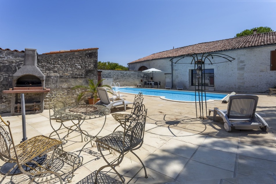 In the immediate vicinity of Cognac and its prestigious vineyards, this characterful property complex offers an ideal setting for a family or tourist project. The main house comprises: On the ground floor: an entrance hall, a kitchen, a living room, a large, bright living room, a boiler room/pantry, and a shower room with WC. Upstairs: two bedrooms, a shower room with separate WC, a bedroom with a private shower room and WC, as well as a master suite with its own bathroom and WC. Outside, you will enjoy a beautiful pool area with a terrace and dining area, a pond, a greenhouse, and numerous outbuildings: a garage, a covered courtyard, a large storeroom, a carport, a workshop, and a technical room. The property also includes several independent accommodations, perfect for developing a hospitality business: Gite 1: living room with open kitchen, shower room with WC, three bedrooms. Gite 2: kitchen/dining area, living room, shower room with WC, two bedrooms, one with private shower room. Studio apartment: living room with kitchen, shower room and WC. Gite 3 (pool side): living room with kitchen, one bedroom with shower room, sleeping area, as well as a separate studio with living room, kitchen, shower room and WC. This property complex, in good condition of renovation, offers multiple possibilities: large family home, gite business, seasonal rental or mixed project. A turnkey place, ready to welcome a new story. Fees: 37,500 including tax (5%) included buyer's charge (750,000 excluding fees). Information on the risks to which this property is exposed is available on the Georisques website: www.georisques.gouv.fr