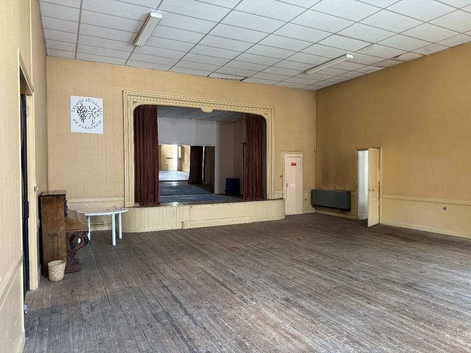 Ensemble immobilier à renover situé à deux pas des commerces, comprenant : entrée, une grande pièce d'environ 87m² avec une scène, une cuisine, une pièce bureau d'environ .50m², local chaufferie, wc. Petite cour. TAE. Honoraires : 9 100 € TTC (7 %) inclus charge acquéreur (130 000 € hors honoraires) Les informations sur les risques auxquels ce bien est exposé sont disponibles sur le site Géorisques : www.georisques.gouv.fr