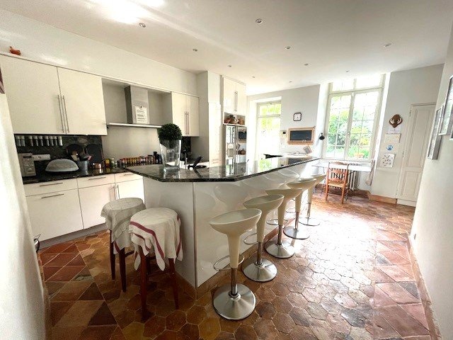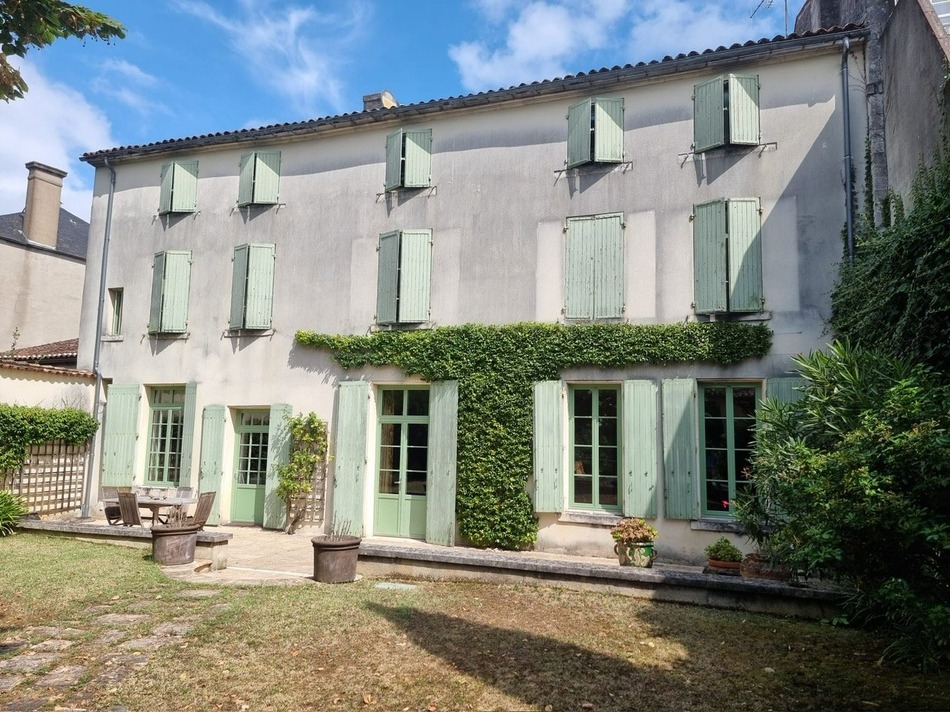 Ideally located in the heart of Cognac's historic center, this characterful residence seduces with its authenticity and superb period features: refined moldings, antique fireplaces, solid parquet floors, decorated cast iron radiators, and wrought iron banisters. The ground floor opens onto a vast entrance hall leading to a welcoming living room, a bright double living room, an elegant dining room, a fully equipped kitchen, and a toilet. Upstairs, the landing leads to a master suite with a private bathroom, two additional bedrooms, one of which has an en-suite shower room, a linen room, a bathroom, and a toilet. The second floor offers a bedroom with a shower room, a dressing room, a library, two additional bedrooms, a private living room adjoining a final bedroom, and a bathroom, providing a separate living space. An annex building completes the property: an office, storage space, cellars, and a double garage. Outside, a terrace covered with Virginia creeper and an enclosed garden bring calm and greenery to the city center. Fees: 27,500 including tax (5%) included buyer's charge (550,000 excluding fees) Information on the risks to which this property is exposed is available on the Georisques website: www.georisques.gouv.fr