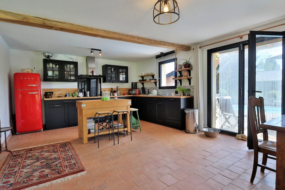 Maison d'Exception avec Piscine Nichée dans la pittoresque région de Maumusson-Laguian, en France, cette maison pleine de charme est une véritable perle rare. Elle a été rénovée avec amour sous l'œil attentif d'un architecte, dans le plus grand respect de la bâtisse d'origine. Des matériaux traditionnels et écologiques ont été utilisés, et les travaux réalisés par des artisans locaux. Un soin particulier a été apporté à la mise en valeur des pierres apparentes et des poutres en chêne. La transformation de cette grange historique offre désormais 240 m² d'espace de vie dans un environnement paisible. La rénovation a permis de créer une circulation logique à travers la maison, alliant confort moderne, volumes ouverts et lumineux. Dotée de trois chambres spacieuses, la propriété incarne un parfait équilibre entre charme rustique et vie contemporaine. Un système de chauffage à pellets alimente le chauffage au sol du rez-de-chaussée, tandis que les fenêtres en aluminium avec double vitrage garantissent efficacité énergétique et tranquillité. Une clôture classique assure intimité et sécurité. Le chauffage est assuré par une chaudière à granulés de bois sophistiquée. Cette magnifique demeure dispose de nombreux atouts, notamment une piscine accueillante, entourée d'une terrasse en bois accessible directement depuis la cuisine, offrant un lieu idyllique à tout moment de la journée pour se détendre en toute sérénité. Les combles aménagés comprennent un espace cinéma, idéal pour des soirées films en famille. La propriété comprend également un puits plein de charme, renforçant son attrait rustique. Grâce à un accès à internet haut débit, vous pouvez rester connecté tout en profitant du calme et de la beauté de la campagne française. Adoptez un style de vie alliant confort et élégance dans cette superbe maison, pensée pour offrir une expérience de vie à la fois détendue et raffinée. Ses intérieurs spacieux, associés à de magnifiques espaces extérieurs, créent un cadre idéal pour la détente comme pour la convivialité.